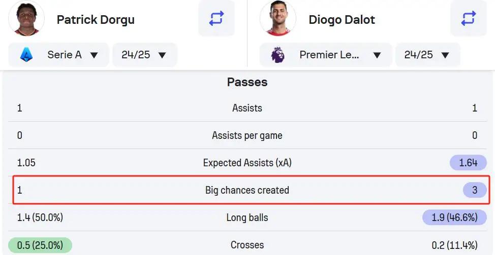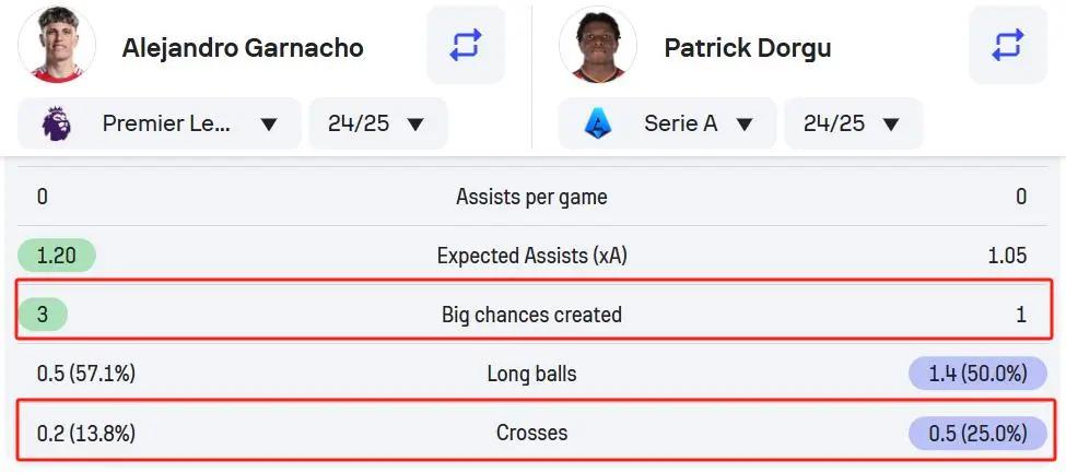 然而,对比多古与加纳乔、达洛特的数据,多古的进攻能力似乎还略逊一筹。