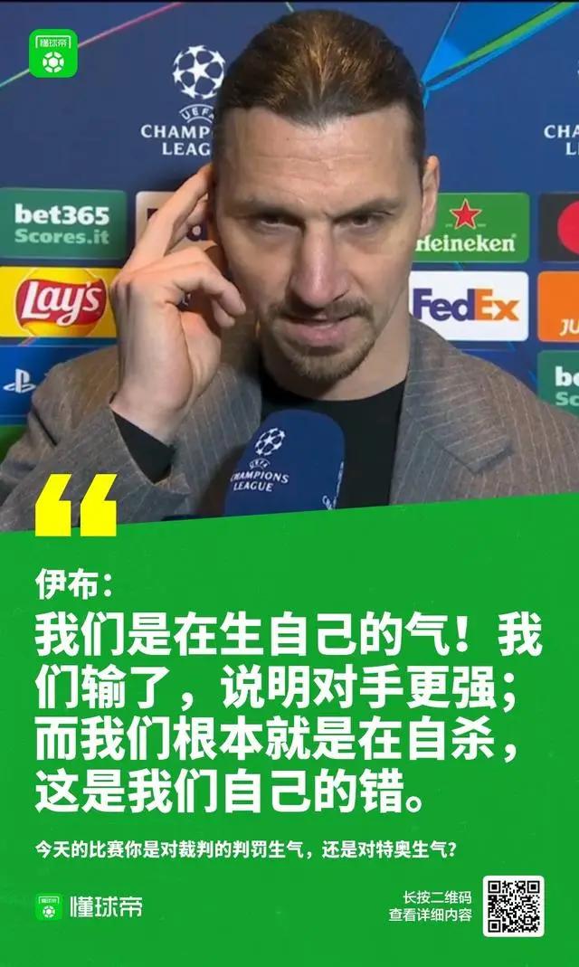 米兰在欧冠淘汰赛附加赛中次回合总比分1-2输给了费耶诺德,被淘汰出局,伊布拉希莫维奇在接受意大利天空体育采访时做出了回应。