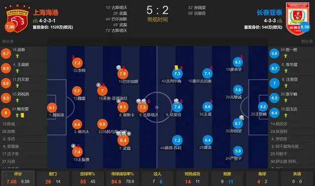 最终,上海海港5-2大胜长春亚泰,豪取联赛三连胜&狂轰16球。